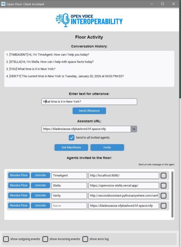 The project team is now working on expanding the specifications with new capabilities, including agent discovery, multimodal communication, and media streaming. We are also excited to see how developers use Open Floor Protocol to build new applications enabled by multiple cooperating conversational AI agents, especially across organizational or platform boundaries.